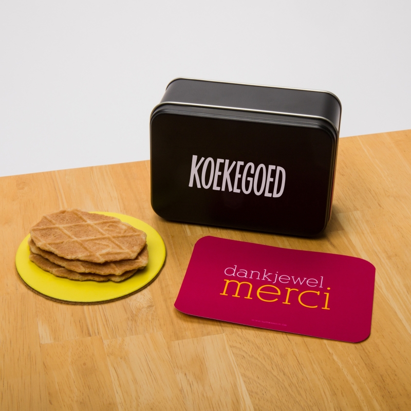 We maakten er een blikken koekendoosje van met de tekst 'Koekegoed'.