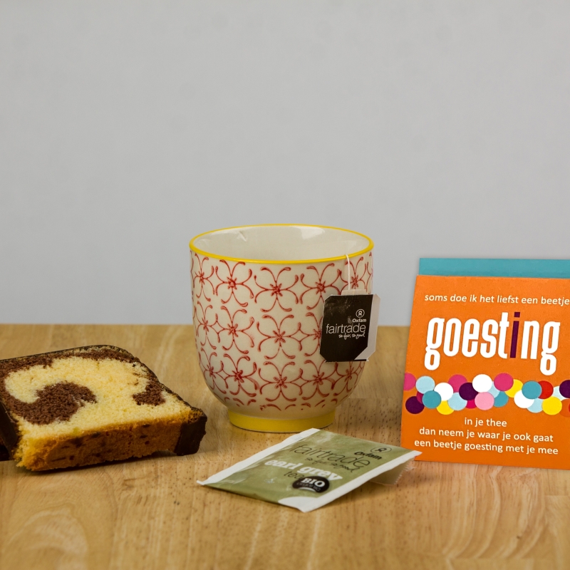 Elke houder bevat een Oxfam theesmaak aangepast aan het trefwoord.