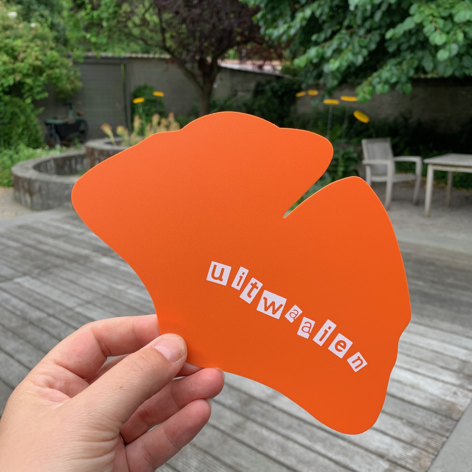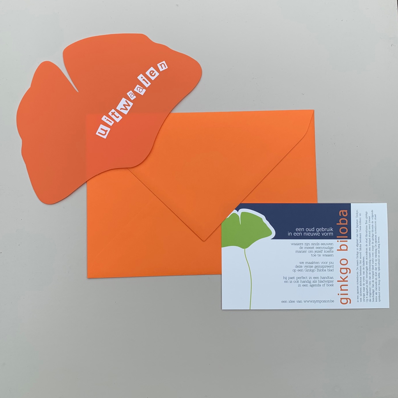 We maakten een kleine waaier die handig in agenda’s en handtassen past. De vorm van de waaier is geïnspireerd op een Ginkgo Biloba blad.
